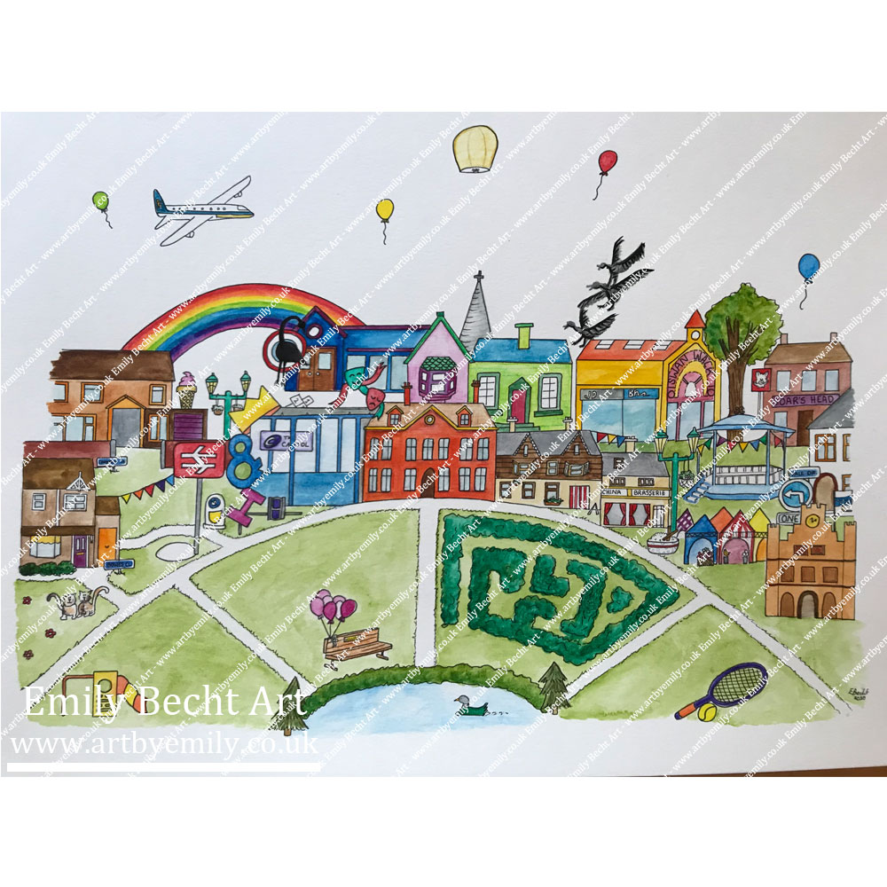 I started creating colourful maps of places that were meaningful to me after being diagnosed with POTs in 2014. Being unable to spend a lot of time outdoors meant that Art suddenly became a massive part of my life, pouring hours of time into every new idea.