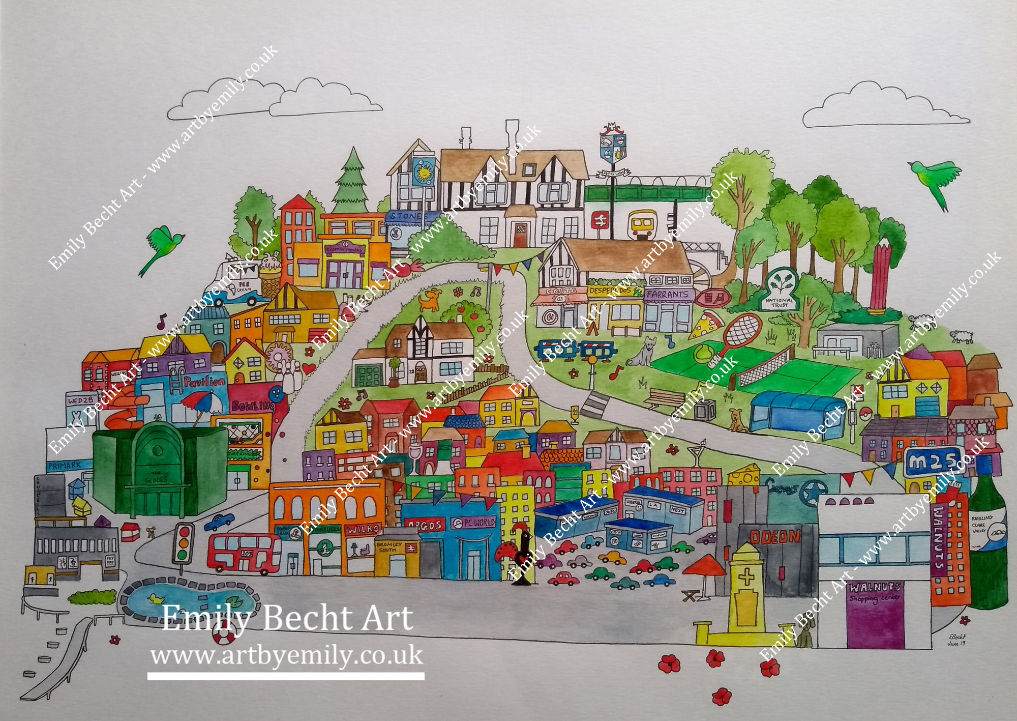 I started creating colourful maps of places that were meaningful to me after being diagnosed with POTs in 2014. Being unable to spend a lot of time outdoors meant that Art suddenly became a massive part of my life, pouring hours of time into every new idea.